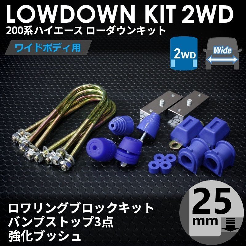 - ●特価 200系 ハイエース 1型-7型 [ワイド 2WD用] ローダウンキット 5 [ブロック25mm(1インチ) + バンプ3点 + 強化ブッシュ] ワゴンGL S-GL
