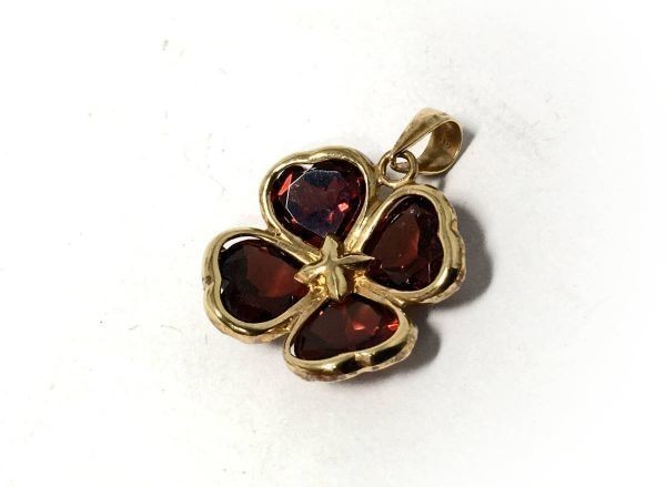 - K18 ガーネット クローバー ペンダントトップ 中古