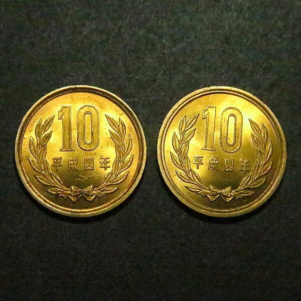 - 10円青銅貨(ギザナシ) 平成4年 未使用 2枚 g4323