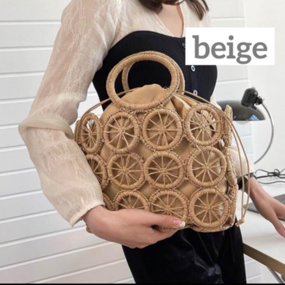 - ペーパー カゴバッグ バッグ 巾着 付き ハンドバッグ ペーパー 茶色 ベージュ