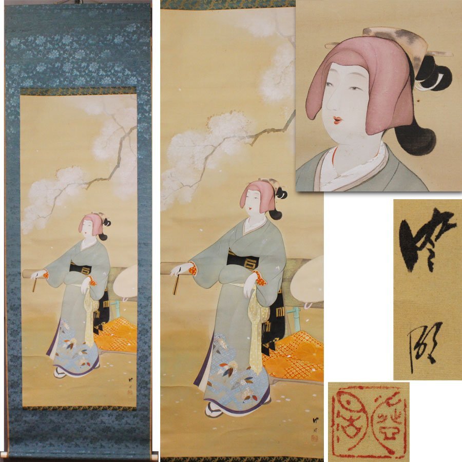 - 《源》【即決・送料無料】時代物「満開桜 花見 美人図」/箱付