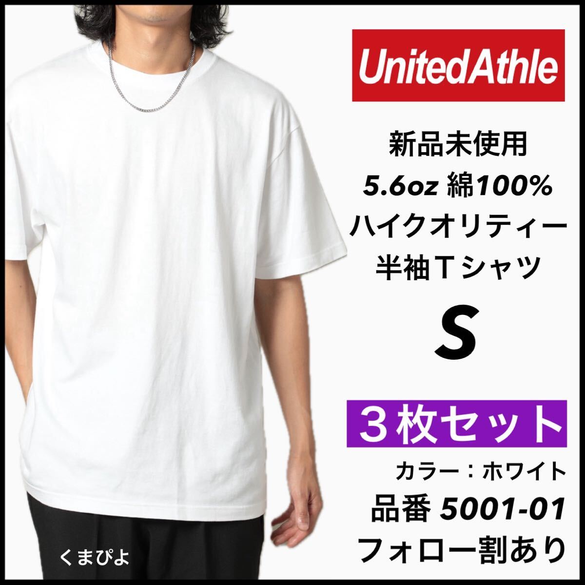 > 新品未使用 ユナイテッドアスレ 5.6oz 無地 半袖Tシャツ 白 ホワイト S サイズ 3枚セット United Athle