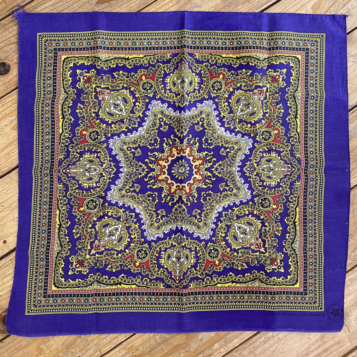 > 送料無料 Vintage ペイズリー柄 バンダナ アメリカ仕入れ 雑貨 パープル 紫 小物 おしゃれ 春物 夏物 イエロー ヴィンテージ A1090