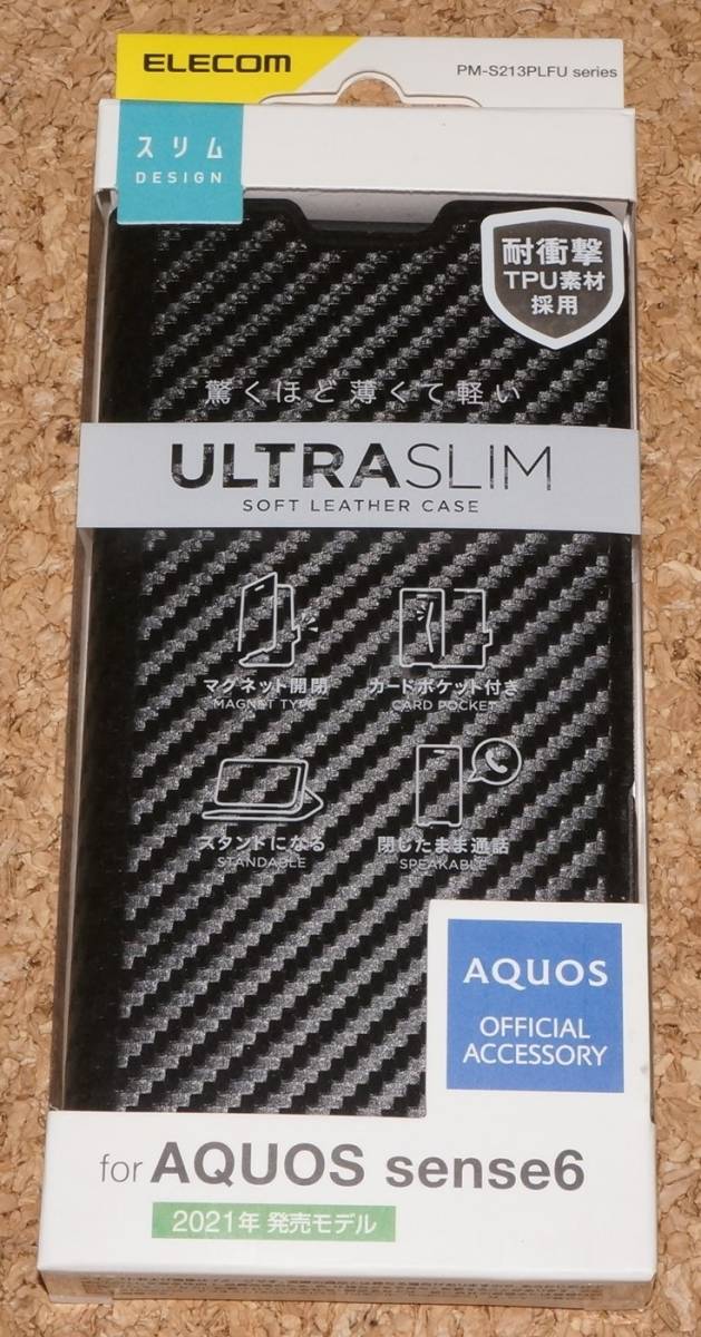 - ★新品★ELECOM AQUOS sense6/6s レザーケース Ultra Slim カーボン調 ブラック