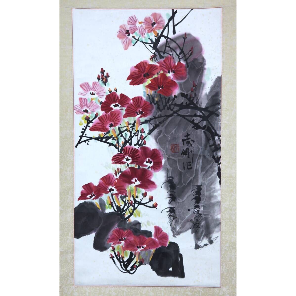 - 【真作】【風車】 張志剛 「凌霄花」◎肉筆紙本◎画家張純熙の子 程十発、于希寧師事 中国美術家協会会員 北京湖社会員 太行画院副院長