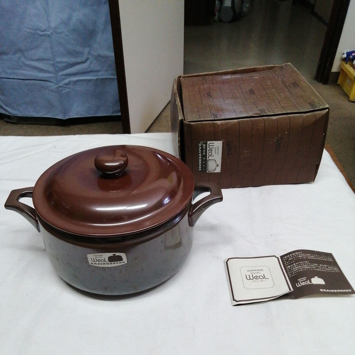 - 【カメイガラス ミヨシ ウィール 超耐熱磁器 】直火 陶磁器 両手なべ アンティーク 昭和 箱入未使用 キャンプ アウトドア 約高10.8cm
