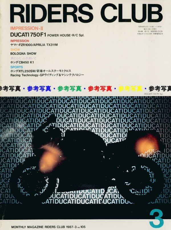 - ライダースクラブ1987/3■ドゥカティ750F1POWER HOUSE-R/C Spl/FZR1000/アプリリアTX311M/CB450/ヤマハFZR1000/ホンダRTL250SW