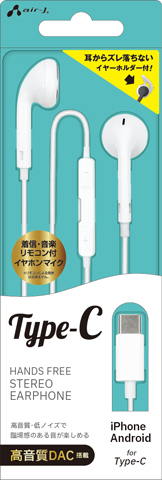 - Type-C接続イヤホンマイク付きステレオイヤホン・HAC-ES45WH