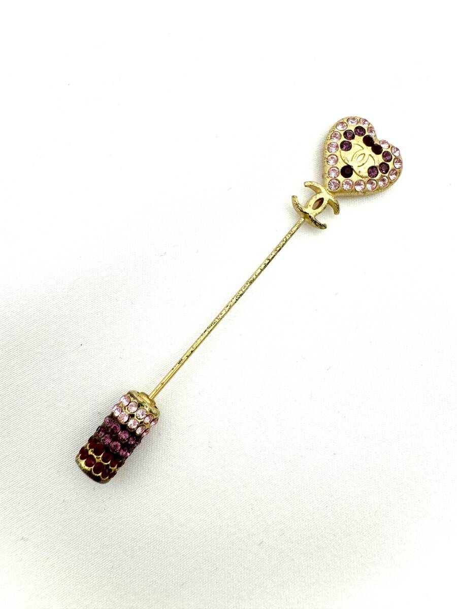 - 6E1906 【本物保証】シャネル ピン ブローチ ハート カラーストーン レッド ピンク ココマーク ゴールド 02P CHANEL