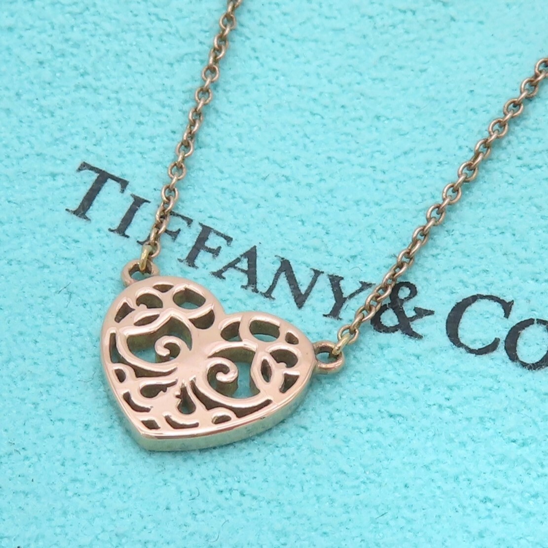 > 【送料無料】 希少 美品 Tiffany&Co. ティファニー ピンク ゴールド エンチャント ハート メタル ネックレス METAL HA449