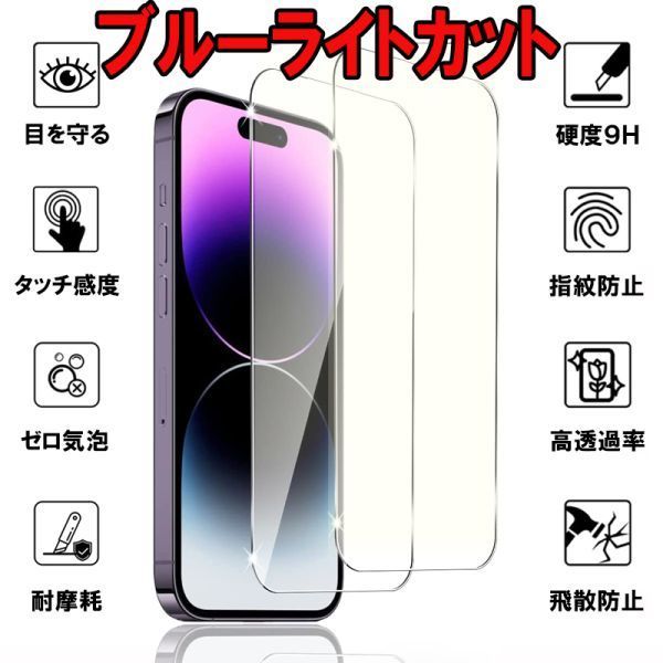 - 2枚入り iPhone 14 Pro Max ブルーライトカット ガラス フィルム アイフォン 液晶 画面 保護 シート シール 頑丈 カバー Glass Film 9H