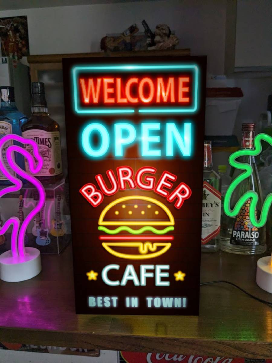 - 【Lサイズ】バーガーカフェ オープン ハンバーガー ネオン系 店舗 サイン ランプ 看板 置物 アメリカン雑貨 ライトBOX 電飾看板 電光看板