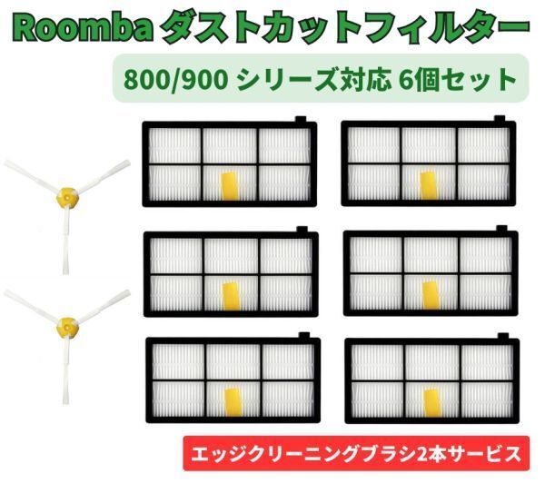 > iRobot Roomba ルンバ 800 900 シリーズ ダスト カット フィルター 6個 +エッジブラシ2本 交換用 予備 修理 替え 備品 メンテナンス Z162
