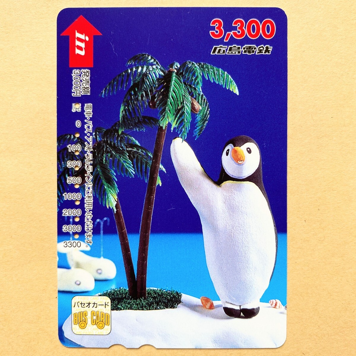 - 【使用済】 パセオカード 広島電鉄 ヤシの木とペンギン