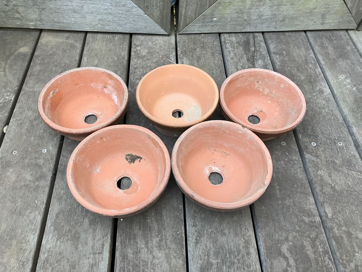 - ★ 送料無料!小さめ植木鉢★5個セット★浅め★素焼き★盆栽★まとめてお得!園芸