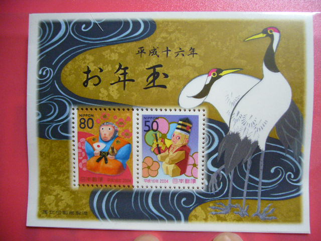 - ..未使用切手 年賀切手 お年玉小型シート 平成16年 さる 申