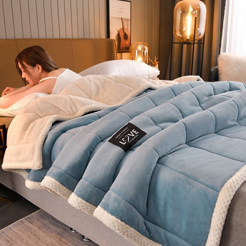 > B0656☆新品毛布 中わた入り 3層 合わせ キング 厚手 あったか 布団 フランネル シープボア ブランケット 掛け布団 暖かい 発熱 保温