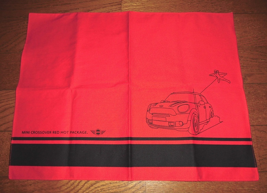> MINI CROSSOVER RED HOT PACKAGE.ミニ クロスオーバー ミニクーパー ハンカチ テーブルクロス RED 非売品 300X390 未使用品/BMW