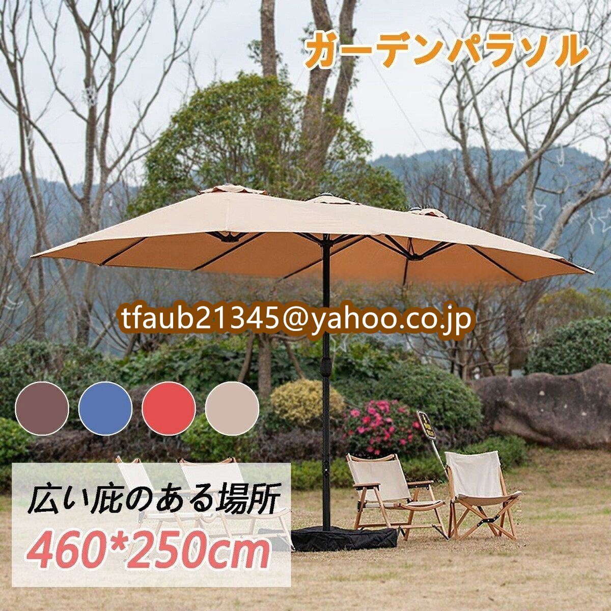 > パラソル ガーデンパラソル 大型 長方形 パラソル 460cm× 260cm UVカット 撥水加工 クランク開閉付き サンドバッグベース付き
