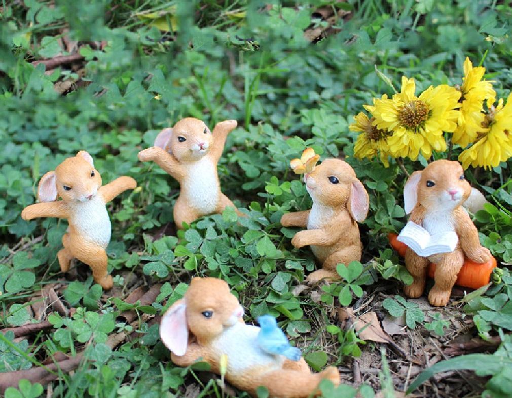 - 【匿名配送】ガーデニング雑貨 ウサギ 5個セット ガーデニングオブジェ 1-1