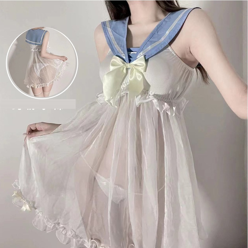 > コスプレ衣装☆悩殺☆シースルー セーラー服風☆ワンピース ドレス☆制服【ワンピース?ショーツ 2点セット】ランジェリー ナイトウェア