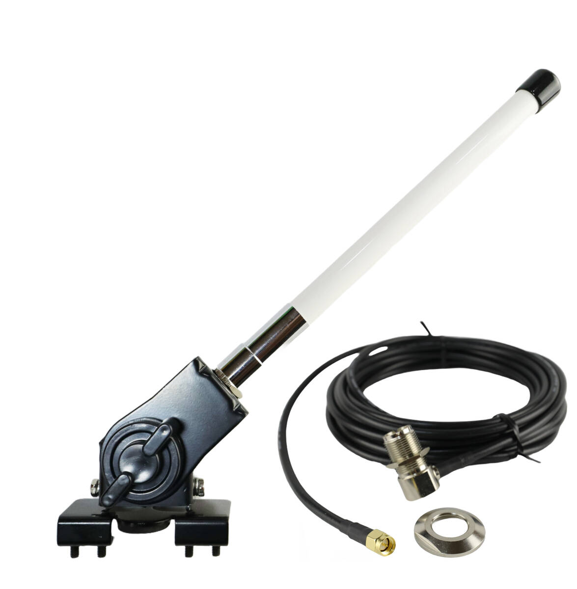 > 【送料無料】22cmデュアルアンテナ(白) 2軸可動式ハッチバック/トランクアンテナ基台 RG58(3D-2V相当)同軸ケーブル5m MJL-SMA接栓付
