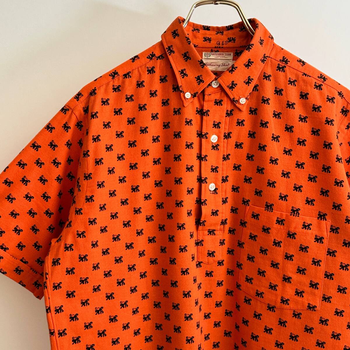 > 希少《 Rare / Hathaway 》60s 美品【 ハサウェイ ビンテージ オレンジ ホップサック BD プルオーバー 半袖シャツ M 】