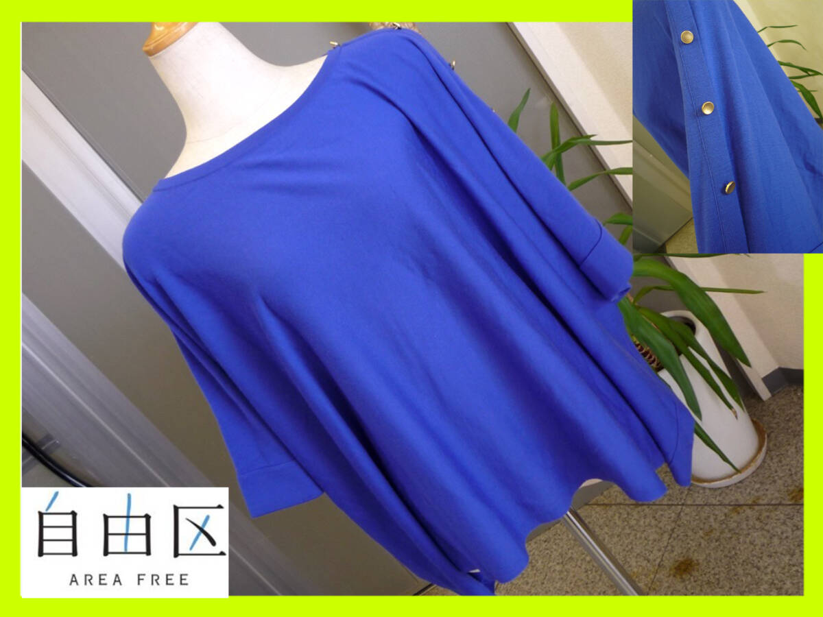 > 自由区 オンワード樫山 ドルマンスリーブ カットソー 青 ブルー 金ボタン サイズ38 トップス 可愛い 爽やか 高級感 ウール100% 美品 綺麗