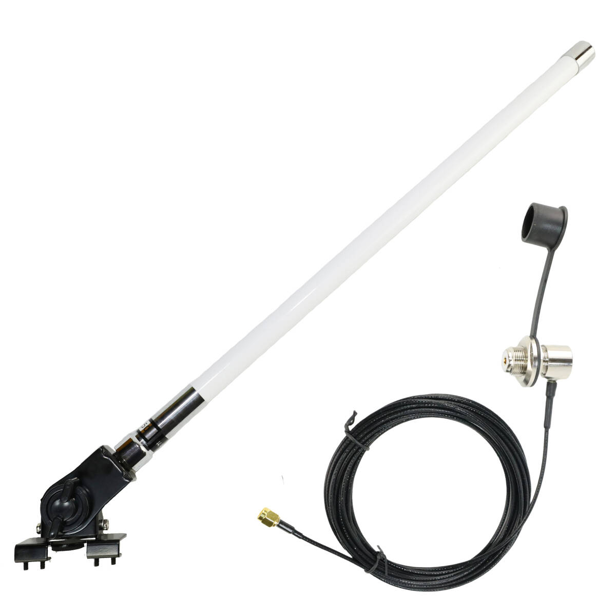 - 送料無料 55cm デュアルバンドアンテナ(白) +2軸可動式ハッチバック/トランクアンテナ基台 RG316(1.5D-2V相当)同軸ケーブル5m MJL-SMA接栓