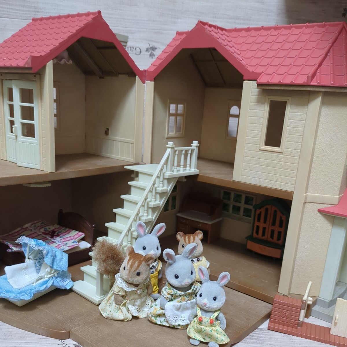 - シルバニアファミリー あかりの灯る大きなお家 人形 家具 エポック社 おもちゃ 追加購入品含め纏めて 二階建て