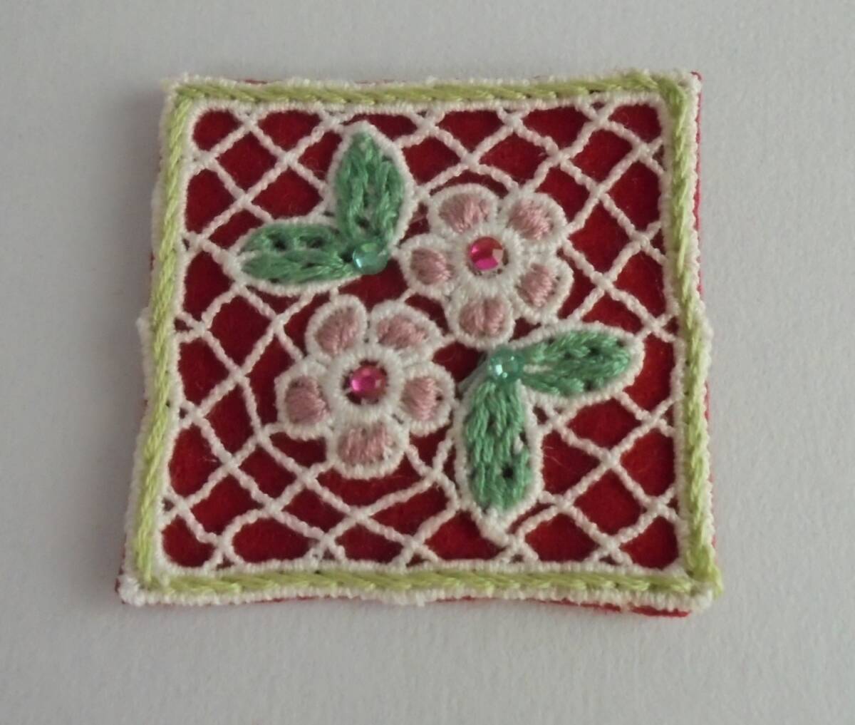 - ♪ ハンドメイド ブローチ お花 ケミカルモチーフに刺繍 高分子結晶ストーン