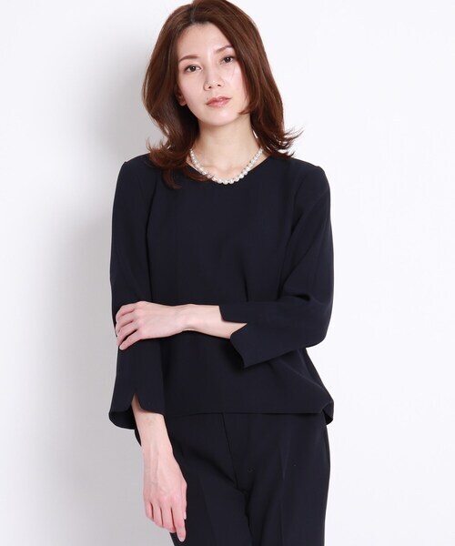 - 新品タグ付き ワールド COUP DE CHANCE クードシャンス【入卒/洗える】ムーンダブルVネックブラウス ヌケ感あり軽やかな印象 36(S)ネイビー