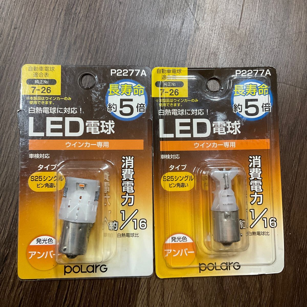 > ポラーグ S25 シングル ピン角違い P2277A LEDウインカーバルブ 2個セット アンバー 未使用品①