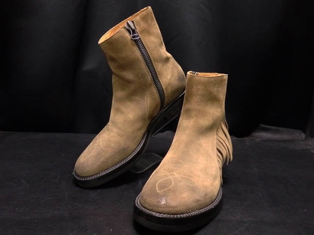 - ブッテロ モカ茶 スエード フリンジ・サイドzip 40 B6622 ブーツ BUTTERO