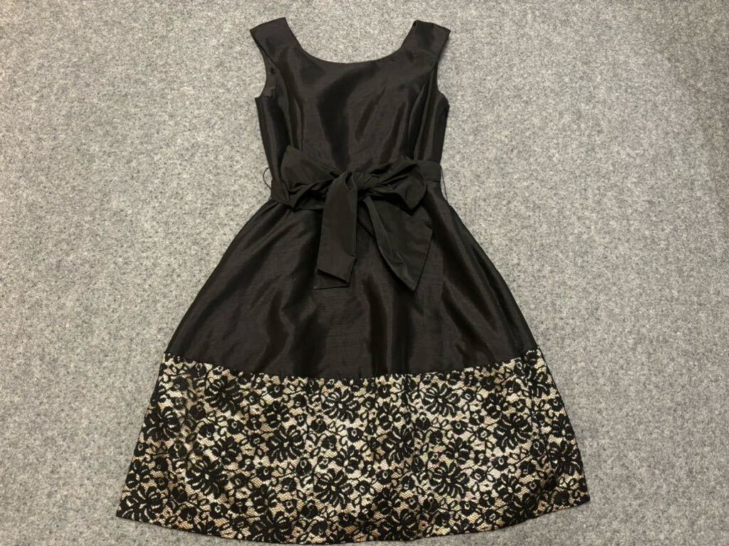 - ef-de エフデ ロングドレスワンピース 演奏会結婚式パーティー花柄レース シャンパンゴールドブラック黒 リボンフレアジャンパースカート