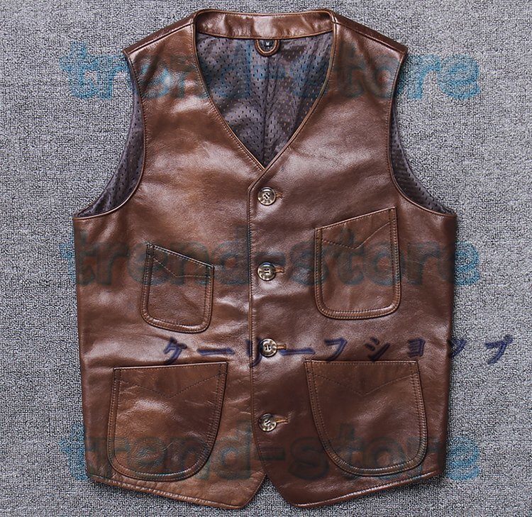 - 紳士格好良いレザーベスト メンズ本革新品 バイク多機能 サイズM-4XL選択