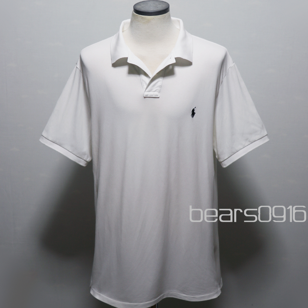 > アメリカ購入 USED品 POLO RALPH LAUREN ポロ ラルフローレン ストレッチ鹿の子 半袖ポロシャツ 白 紺ポニーXXL
