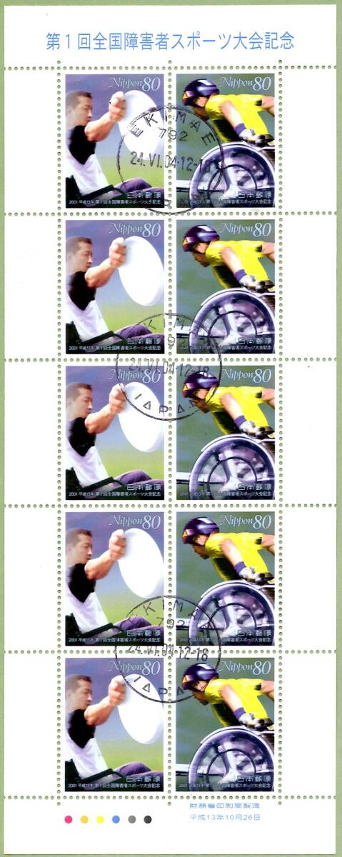 - 第1回全国障害者スポーツ大会記念 シート 欧文印 使用済 記念 切手 平成13年
