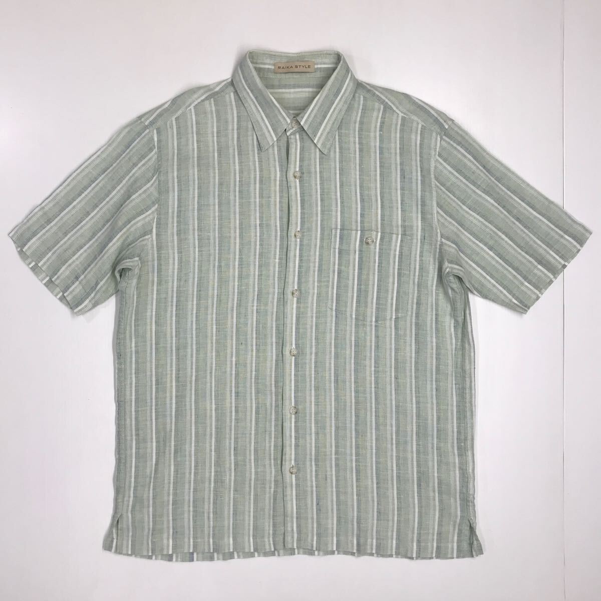 > RAIKA STYLE ライカスタイル 半袖シャツ 日本製 麻混 ストライプ柄 メンズ サイズ46 36-69a