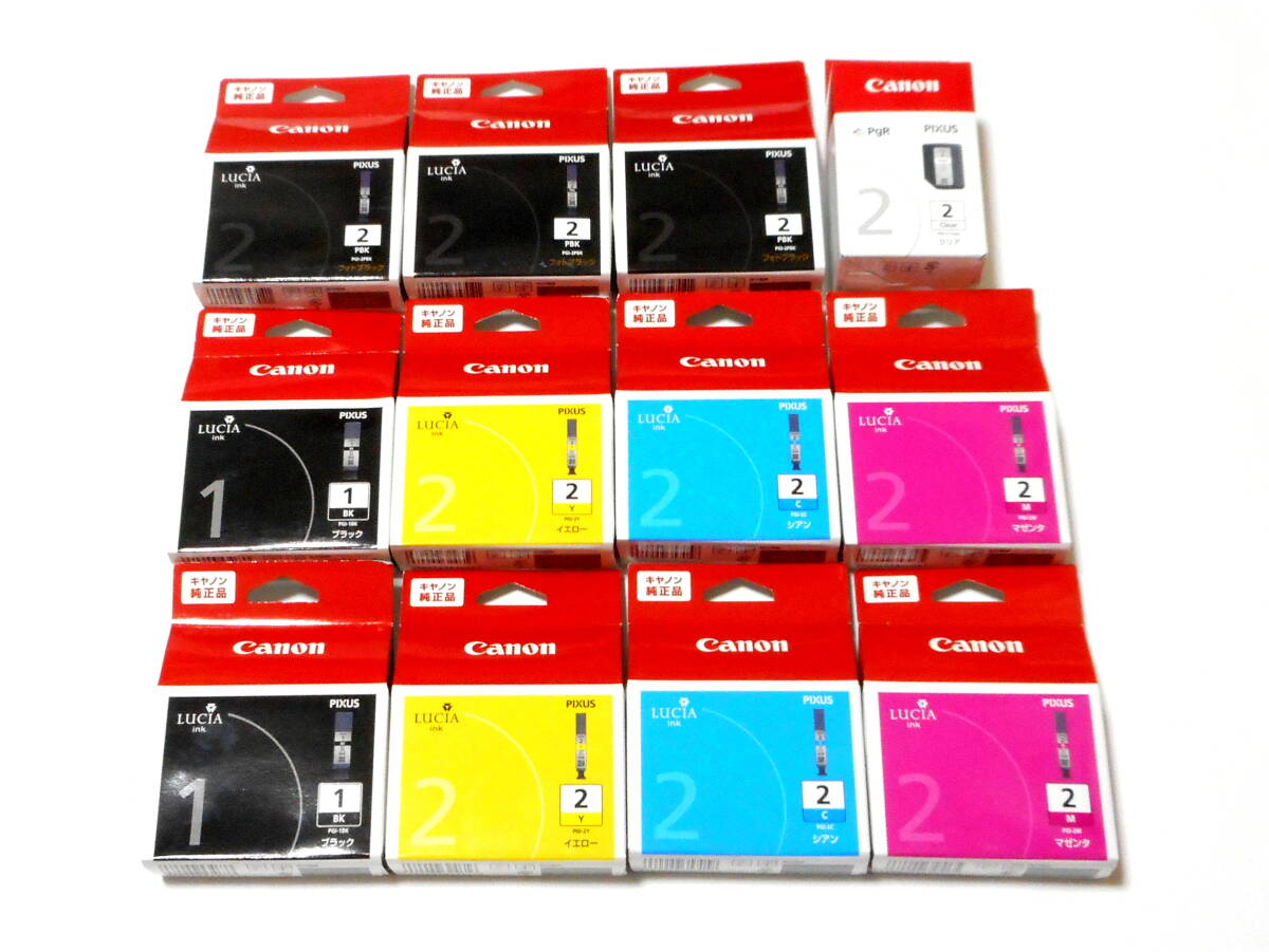 - Canon キヤノン PIXUS 純正 インクタンク 12個セット PGI-1BK/2PBK/2C/2M/2Y/2Clear ブラック シアン マゼンタ イエロー クリア 期限切れ