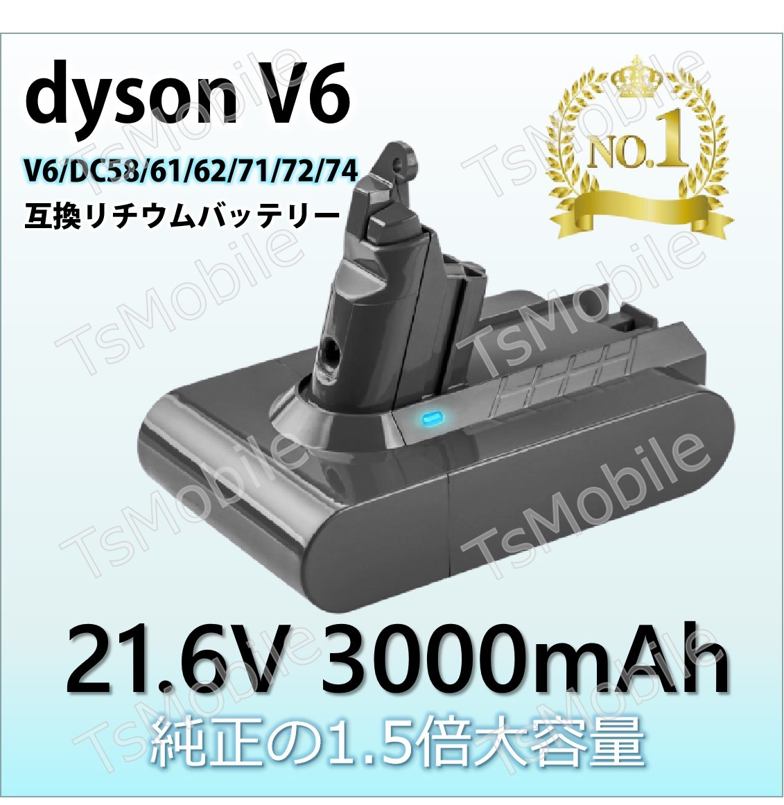 > 3000mAhダイソン dyson V6 SV07 SV09 DC58 DC59 DC72互換バッテリー 21.6V 3.0Ah 認証済み 壁掛けブラケット対応 掃除機パーツ 充電電池