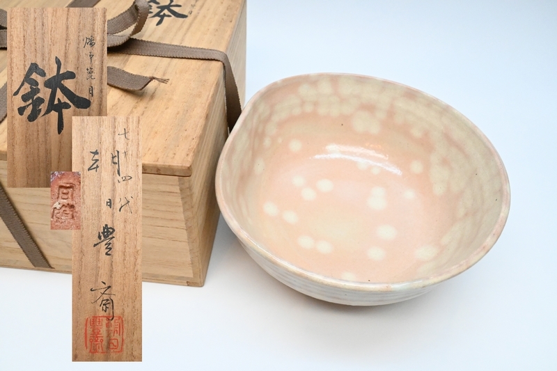 - 朝日豊斎 ■ 鉢 燔師箆目 [ 裏印 ] 朝日焼 ■ 茶道具 栞 未使用 共箱 №9883■
