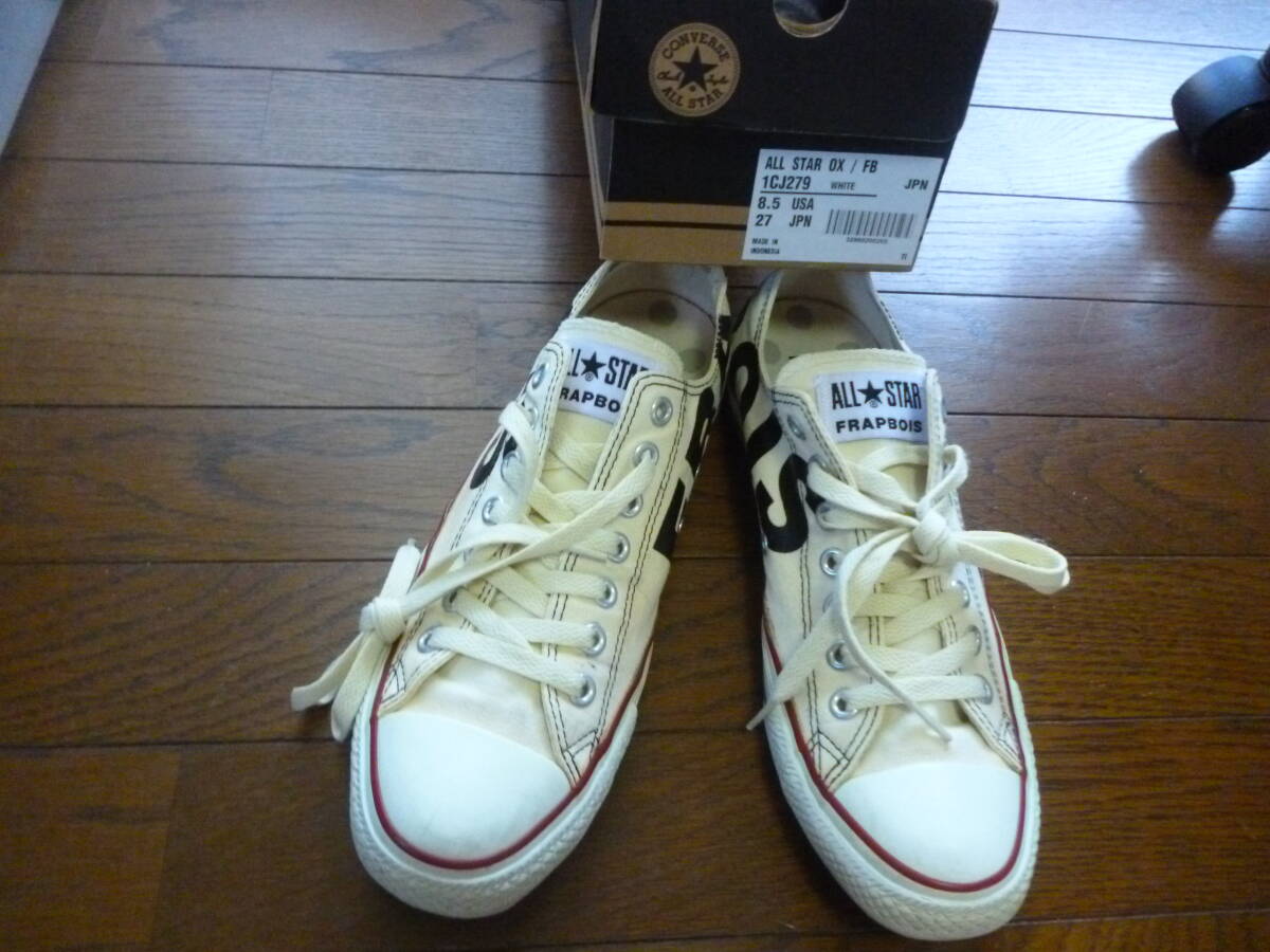 > 即決・送料込み★コンバース(CONVERSE)とフラボア(FRAPBOIS)★のコラボALL STARスニーカー★白xデカロゴ US8.5(27cm)元箱付き