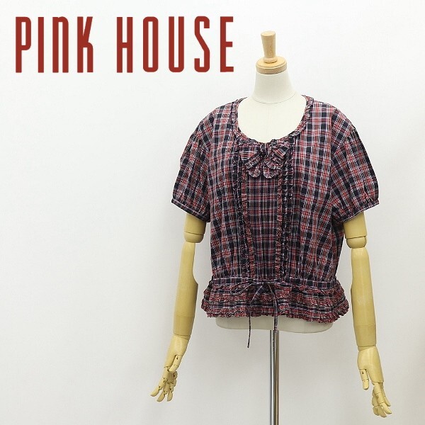 - ◆PINK HOUSE ピンクハウス チェック柄 フリル リボン バックボタン コットン ブラウス トップス