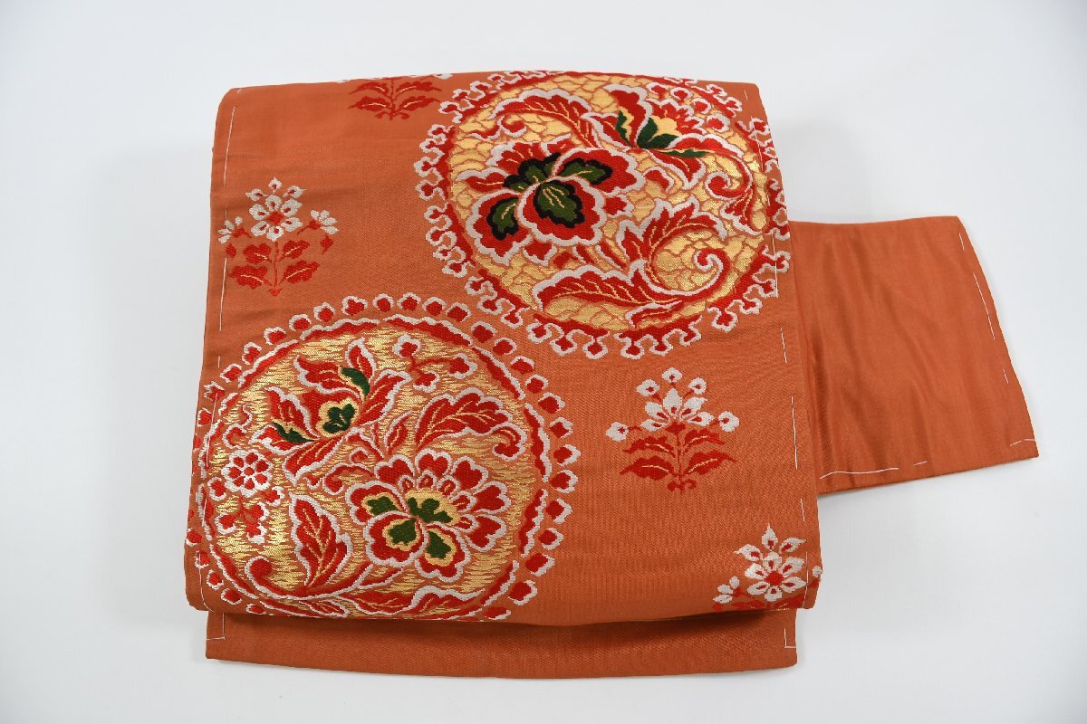 - 名古屋帯 アンティーク 花 秋草 帯丈320cm ★着物屋 ne-10724 桜庭呉服店