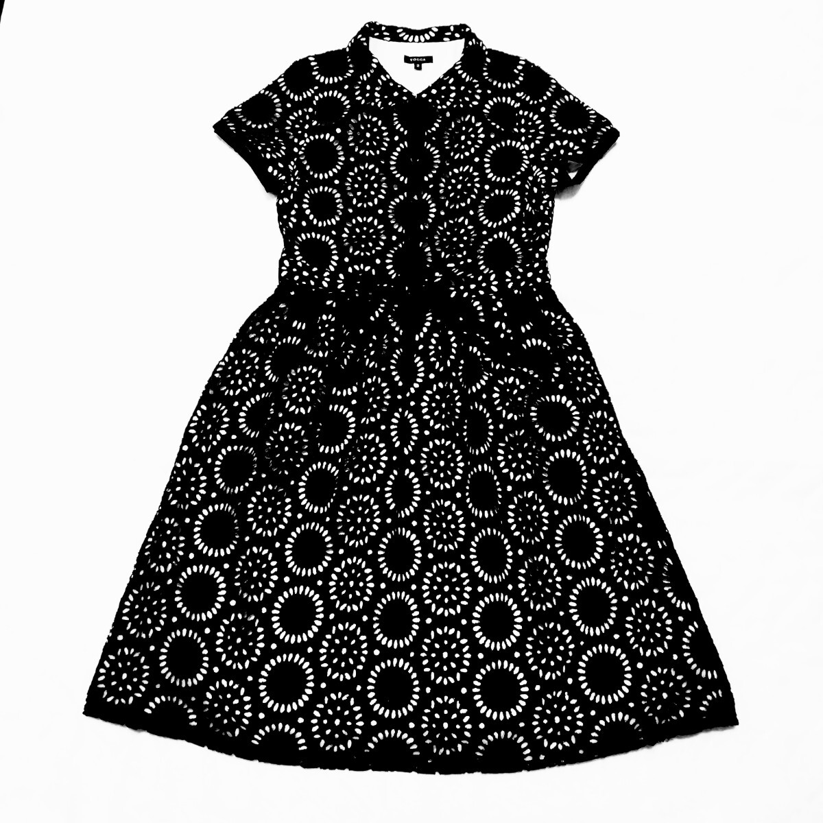 - TOCCA*トッカ*ワンピース*コットンレース*サイズ2*黒*ウエストリボン*フレアー*綿100%*刺繍*裏地付き*襟付き*