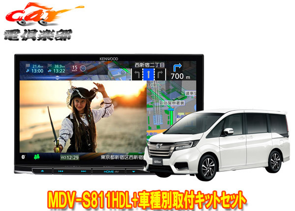 - 【取寄商品】ケンウッド8V型彩速ナビMDV-S811HDL+KIT8-K19STステップワゴン(RP1~5系)用取付キットセット