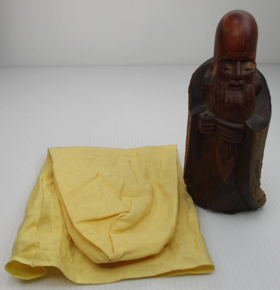 - S-1034 一刀彫 寿老人 七福神 作者不明 古い置物