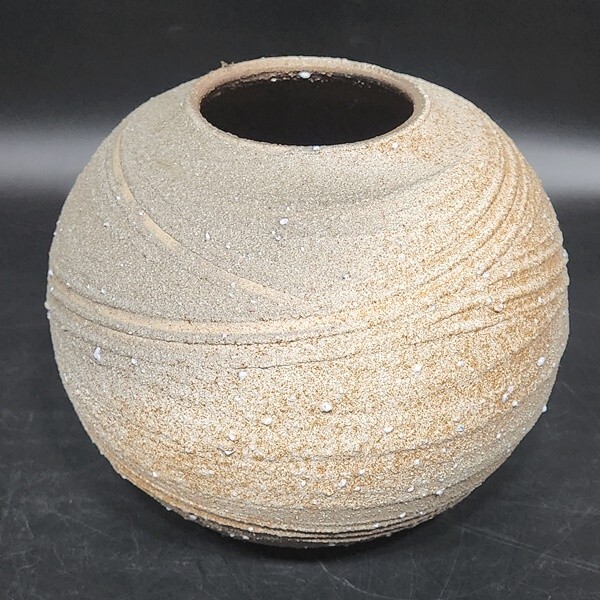 - M63 丸壺 20㎝ 茶色 焼き物 花瓶 茶道