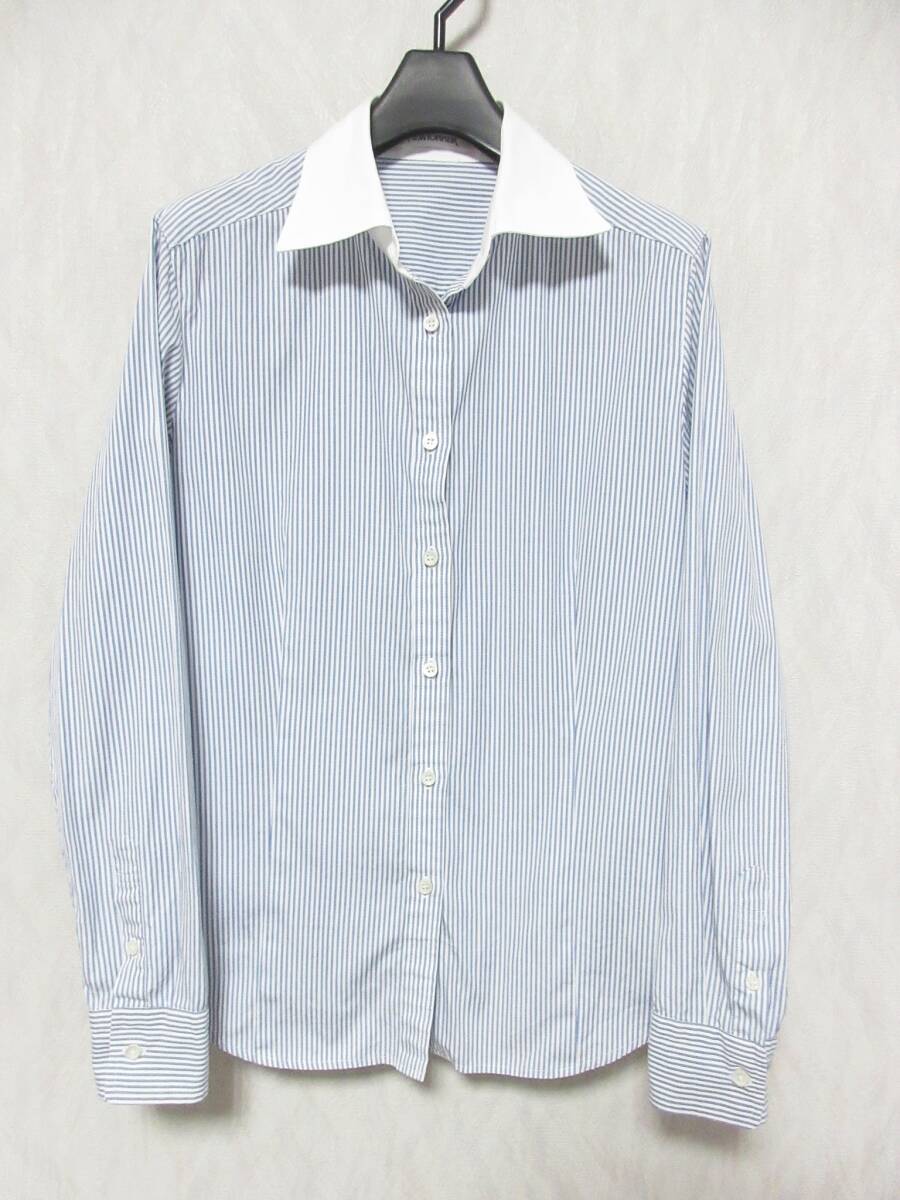 > NEW YORKER ニューヨーカー ストライプ 長袖 シャツ レディース 11R ブルー ホワイト irmri yg5864